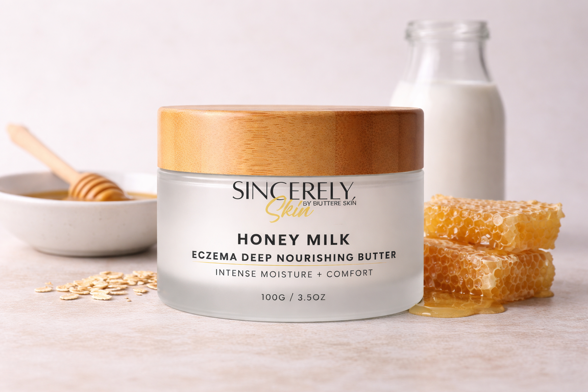 This is your seal-it-in step. Honey Milk Whipped Body Butter is a rich, whipped cushion of butters and skin-loving oils made to comfort dry, sensitive skin and help protect against moisture loss. It melts on contact, smoothing rough areas and leaving your skin deeply nourished with a soft, satin finish.