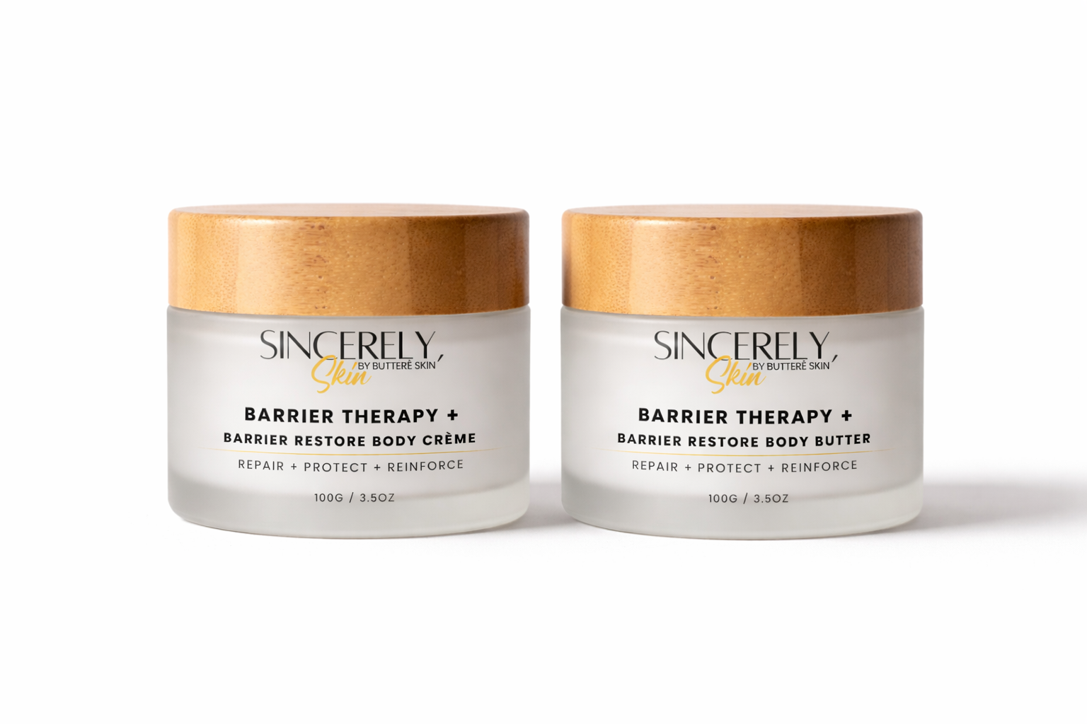 💛 Apply Barrier Therapy Body Butter + for deep, cushiony nourishment.
