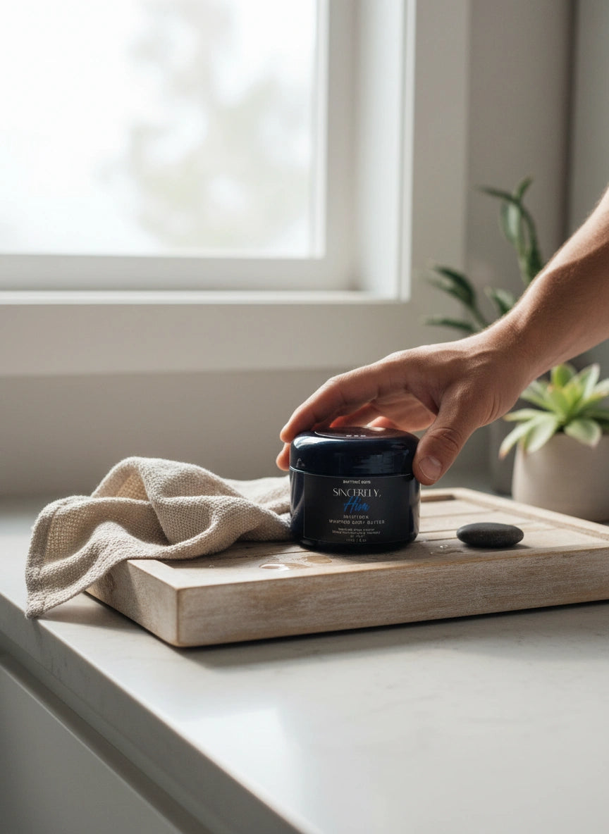 Gentle luxury over hype—thoughtfully selected butters, oils, and humectants. Phthalate-free fragrance. Cruelty-free.